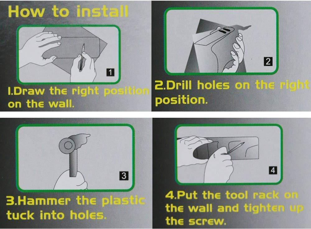 Included with your heavy duty broom holder are all the screws and anchors needed to mount shelf securely, along with clear step-by-step instructions and video that allow even the clumsiest of us can install easily in just minutes!