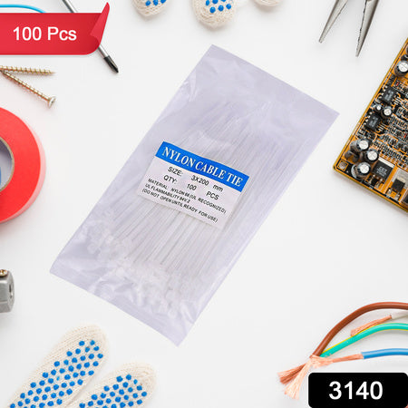 3140 _3.2x200mm Nylon Self Locking Cable Ties Heavy Duty Strong Zip Wire Tie. Pack Of 100