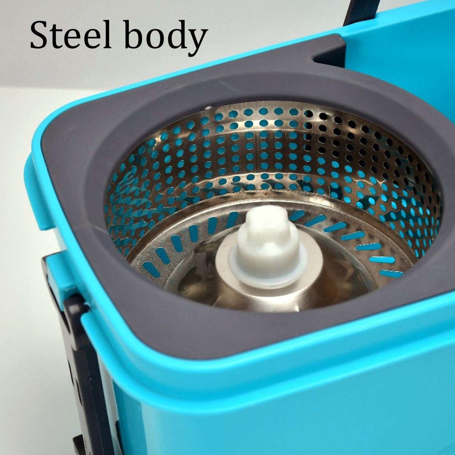 Microfiber material with its unique feature of deep cleaning helps lift and trap fine dust / dirt particles. 180 degree Rotating spin mop handle. Lightweight and adjustable stainless steel mop handle reaches corner of the house - like under the table, below the bed, very easily.Hands free Wringer, the mop bucket comes with wringer that allows you to easily press excess water out of the wet mop, without using your hands.Telescopic Mop Handle lets you extend the mop to your preferred height and clean effortlessly.