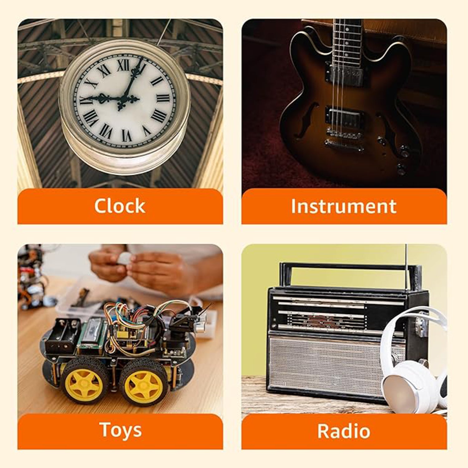 ✔ Household Devices – remotes, wall clocks, radios, and alarm clocks.