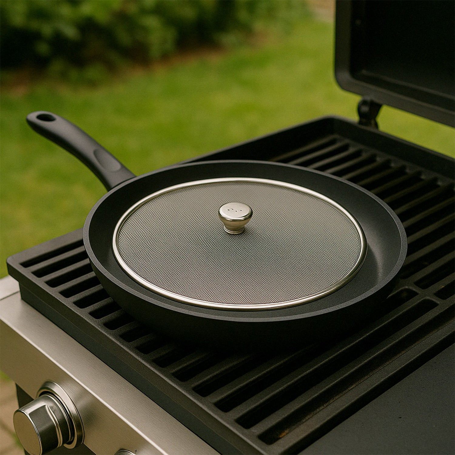 Universal Compatibility: Perfectly fits most small-sized frying pans, kadais, and saucepans. Easy to store when not in use.