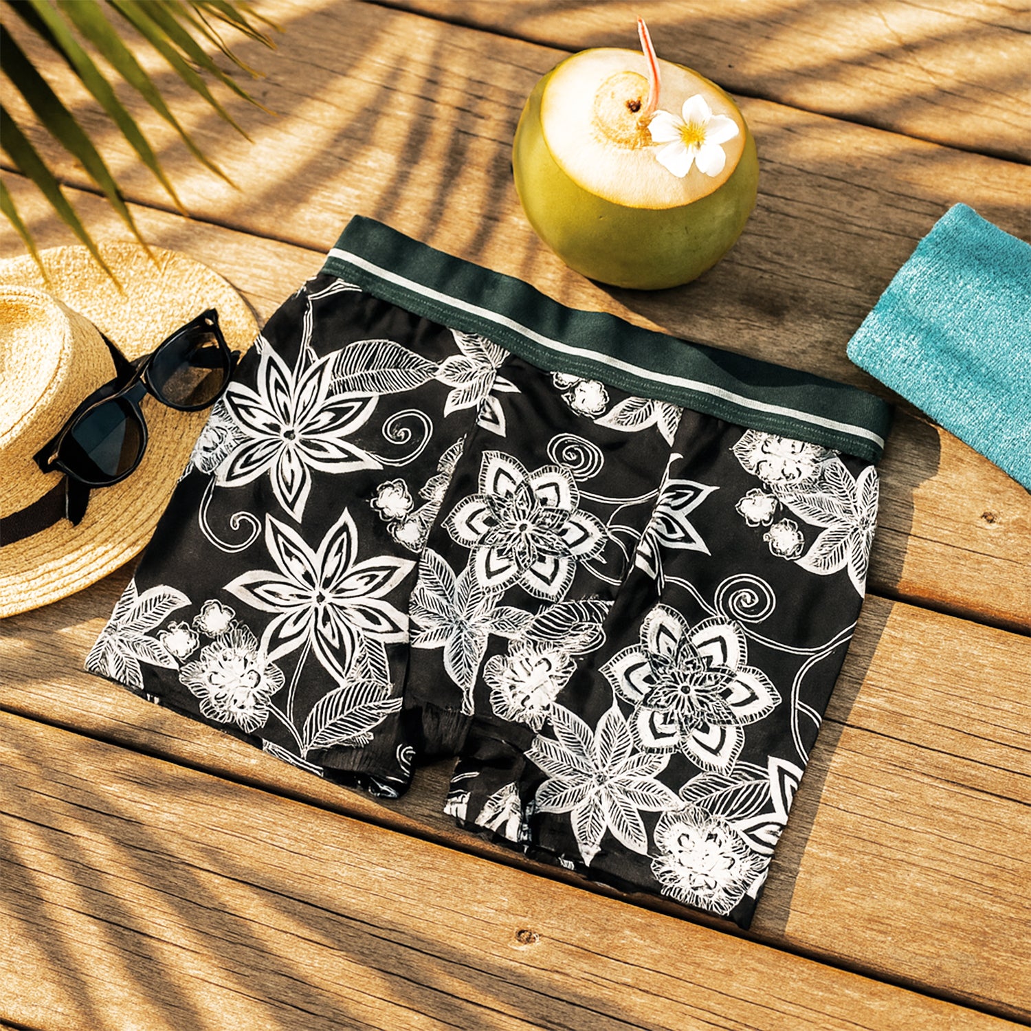 Upgrade your daily comfort with these medium-size men’s boxer shorts, crafted from a breathable cotton-rich knit blended with elastane for gentle stretch. The wide, soft waistband stays put without pinching, while smooth inner seams help prevent chafing. A bold monochrome floral print adds style to your everyday essentials—perfect for office, travel, lounging, or sleep.