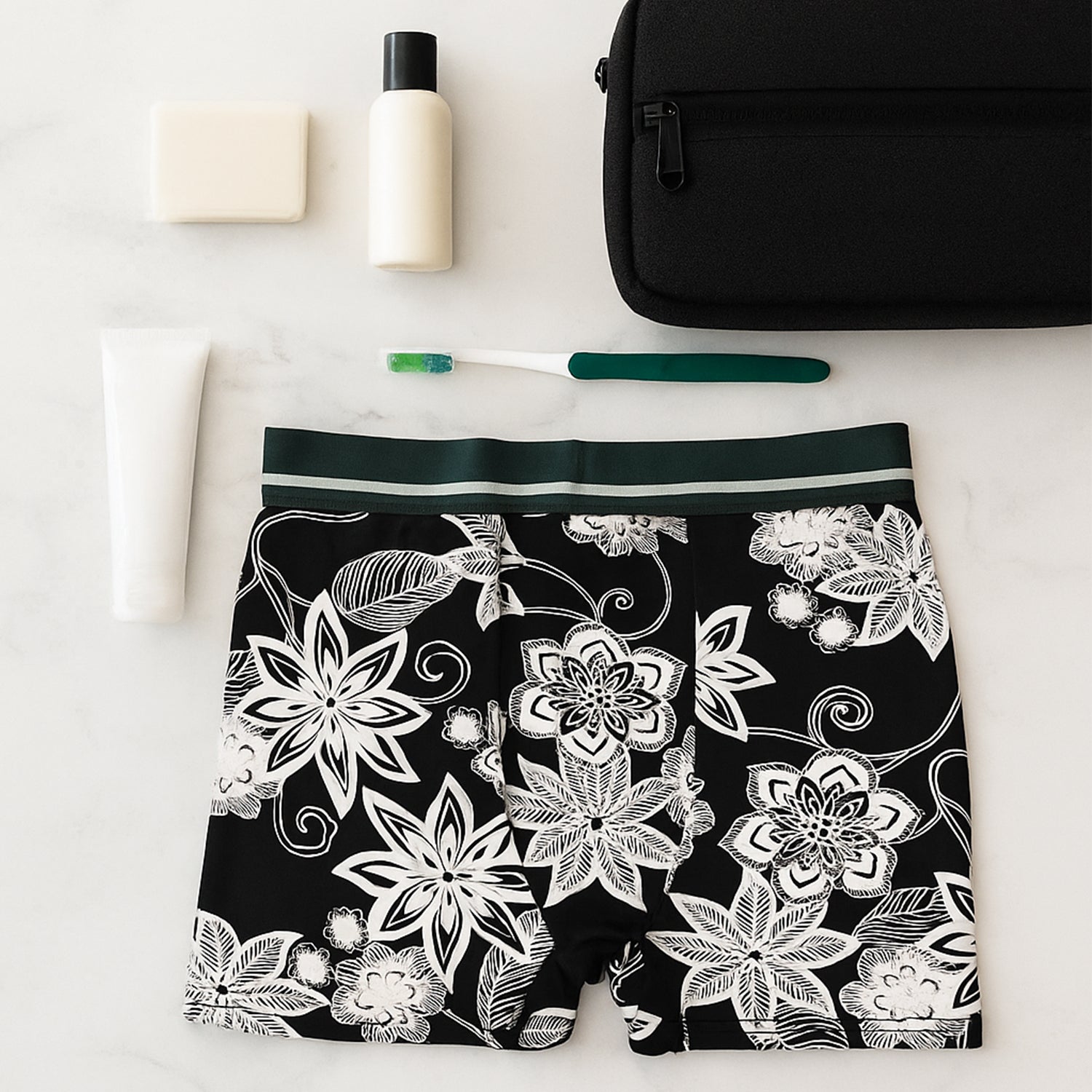 Men’s Boxer Shorts – Medium Size, Cotton-Rich Stretch Knit with Soft Elastic Waistband | Black & White Floral Printed Everyday Innerwear | 1 Pc