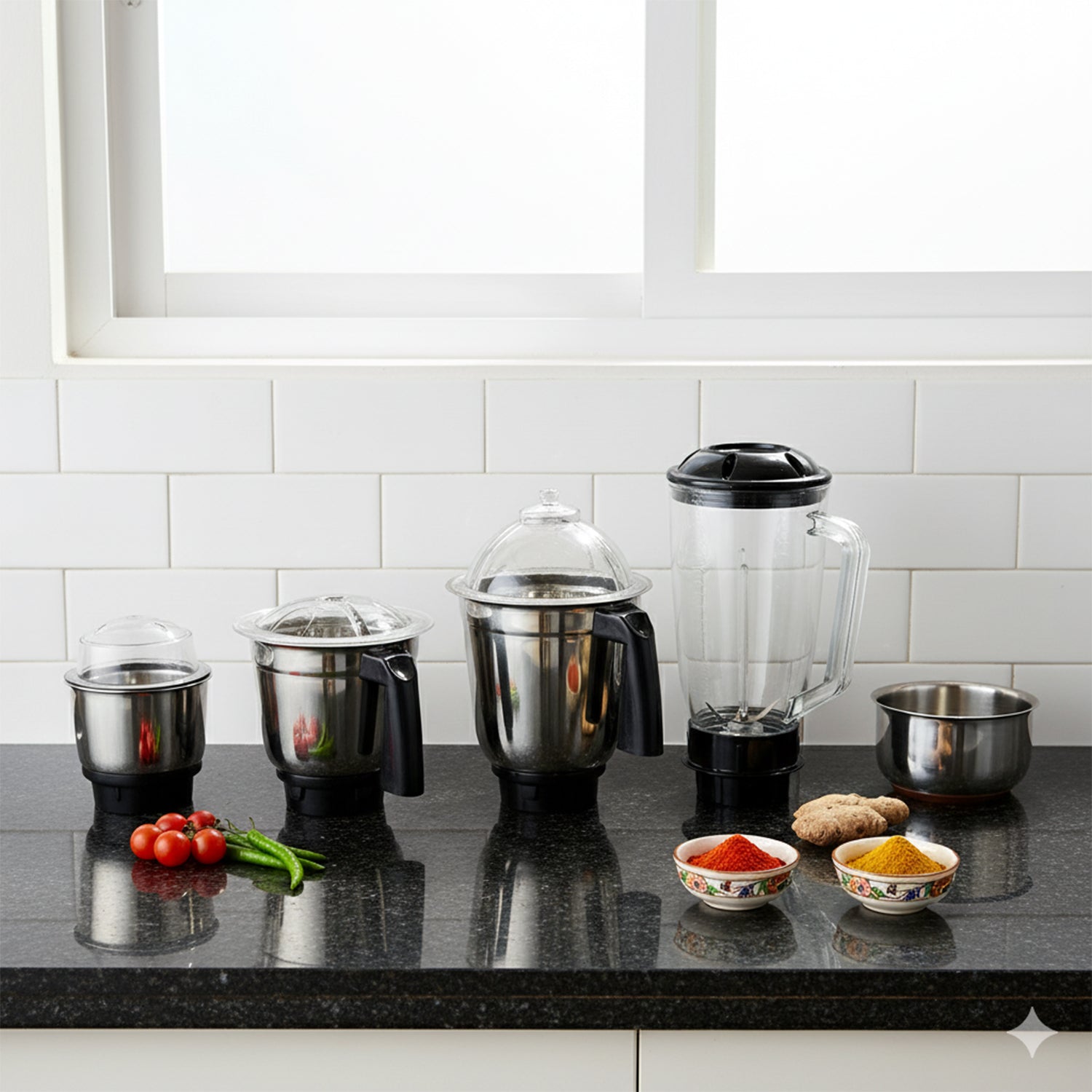 Orbit Heavy Duty 1 HP Mixer Grinder with 4 Multipurpose Jars – Stainless Steel & Unbreakable Polycarbonate Jars – Powerful Motor for Grinding, Blending & Juicing