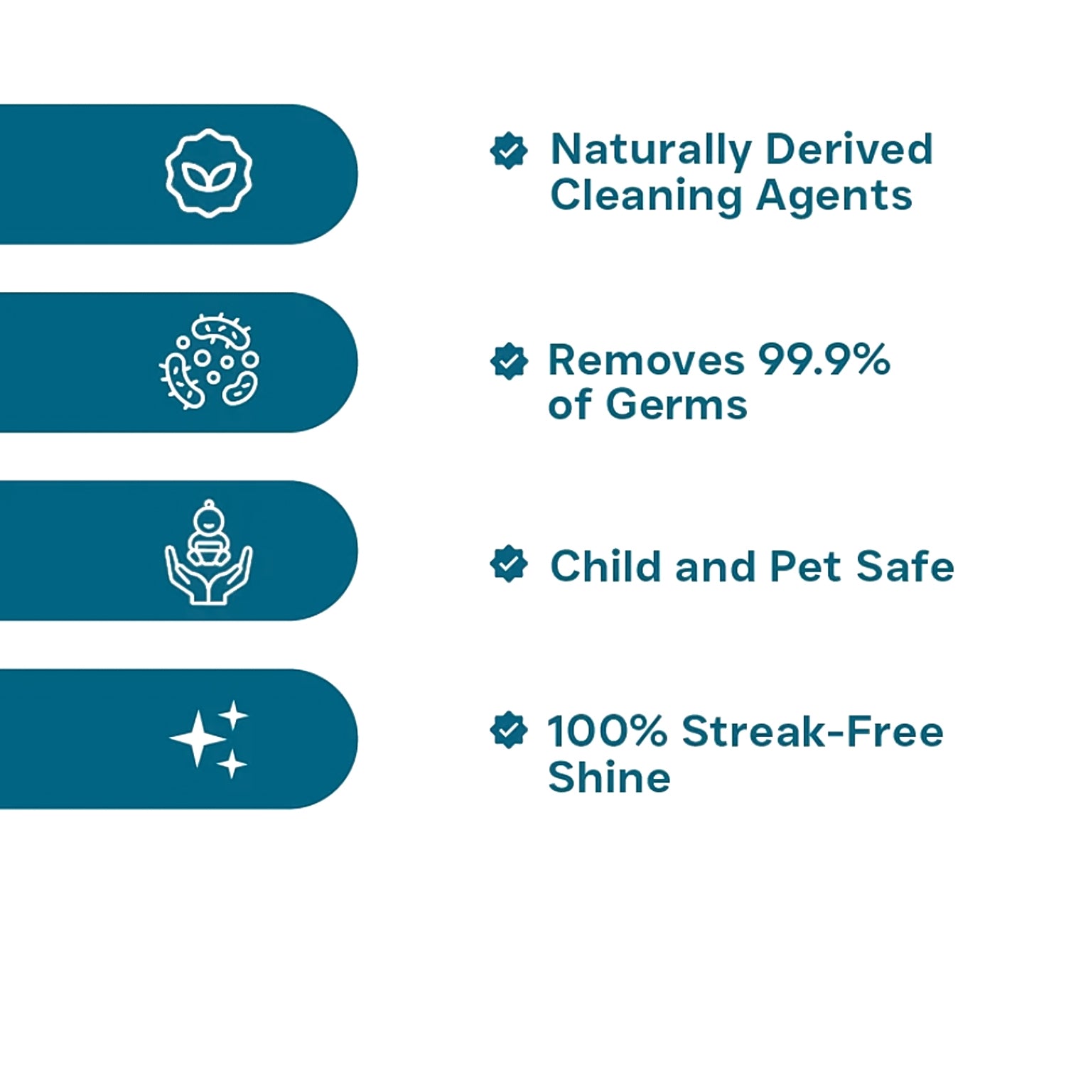 Streak-free clean: Removes dust, light oil and stains while drying fast.
