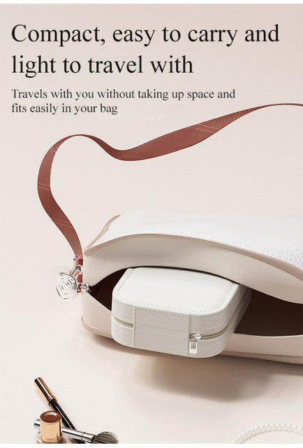 Proper zoning inside accommodates eyeshadow palettes, necklaces, earrings, and rings, turning it into a spacious and organized cosmetic holder without bulk. -