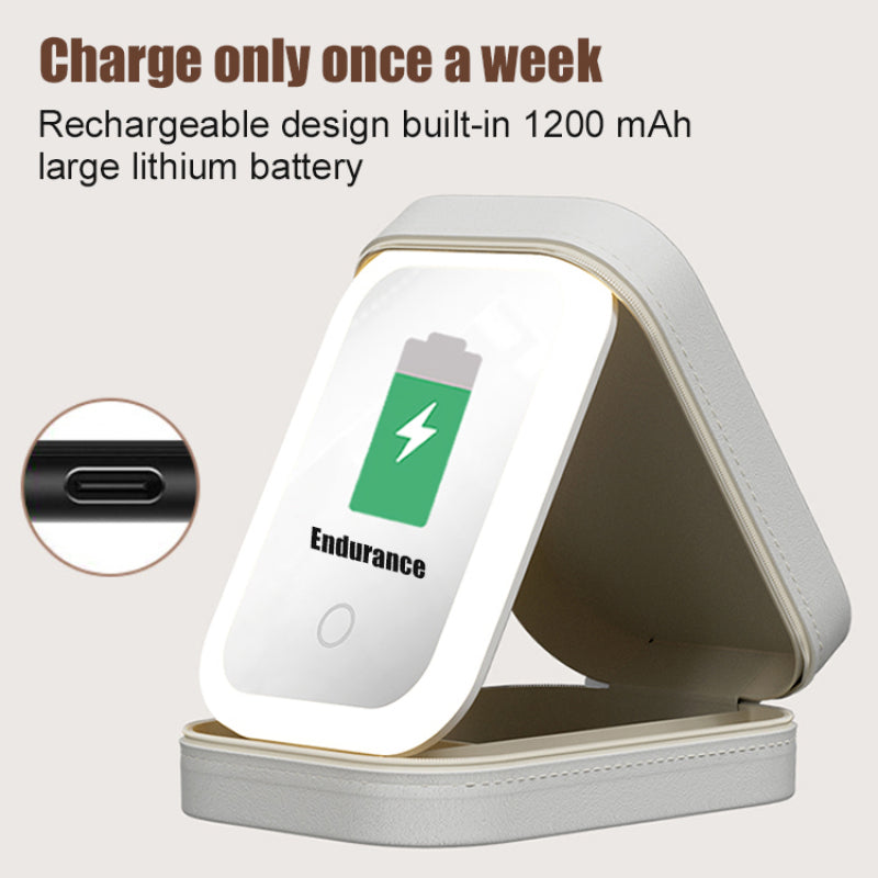 This LED Complementary Jewelry Box combines a high-definition mirror with smooth LED lighting for flawless makeup application. It’s compact, portable, and easy to use, with touch-activated lighting and three color temperature options. -
