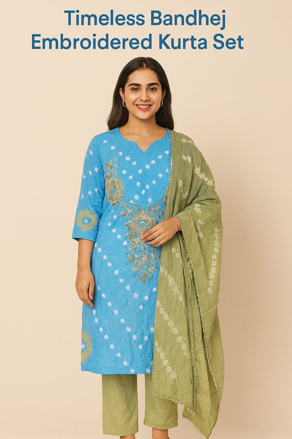 This premium three-piece suit set is crafted with exceptional attention to detail. The kurti features delicate embroidery/print patterns that add sophistication to the outfit. The coordinated bottom ensures ease of movement, while the lightweight dupatta completes the look with grace. Ideal for festivals, parties, office gatherings, and traditional events, this…